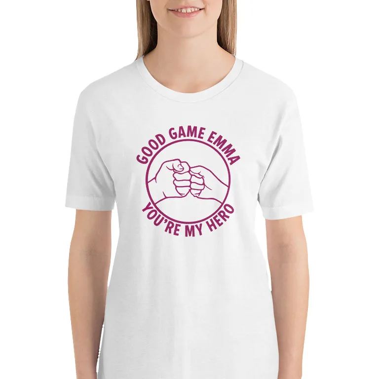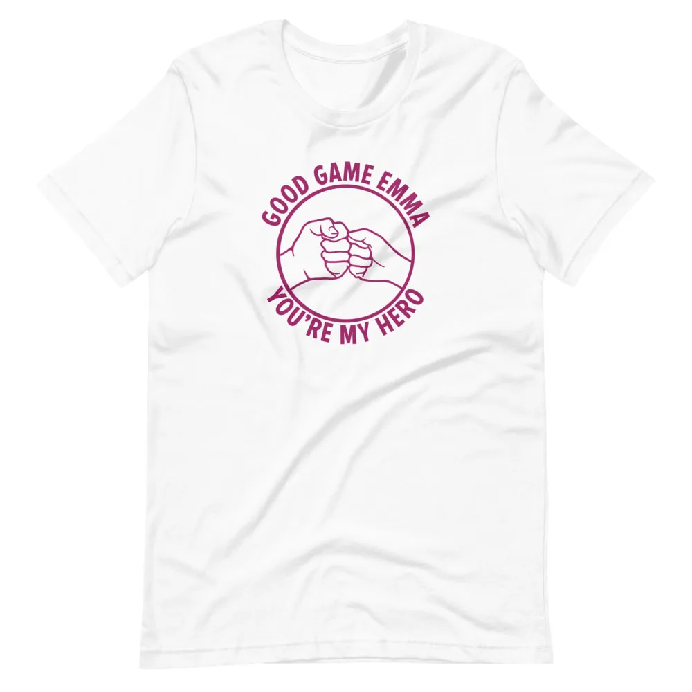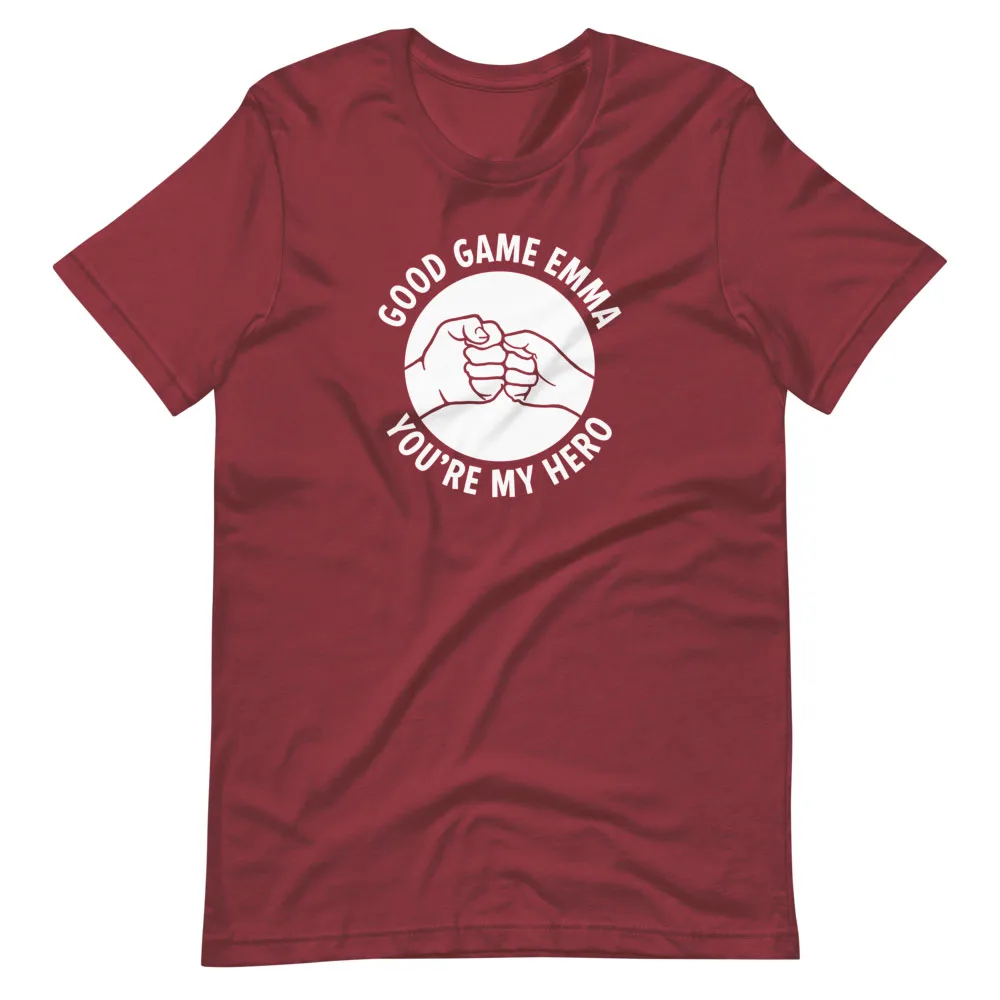 Be the first to review ““Good Game Emma. You’re my hero” shirt”